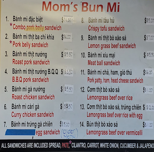 Mom's Bun Mi offers a delightful and mouth-watering menu that truly stands out in the world of Vietnamese sandwiches. As a reviewer, I can confidently say that each item on their menu is a true testament to the flavors and authenticity of traditional Bun Mi with a modern twist.